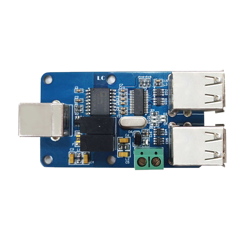 This module provides a layer of isolation for both USB power and data lines, as well as a 4-port USB 2.0 Full-Speed HUB.